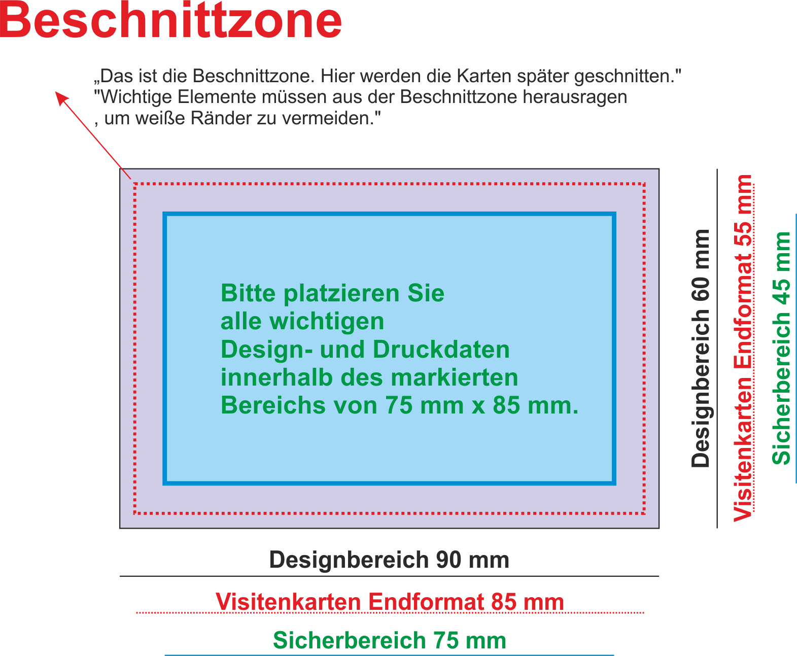 Erklärung der drei Bereiche für Visitenkarten Druck: